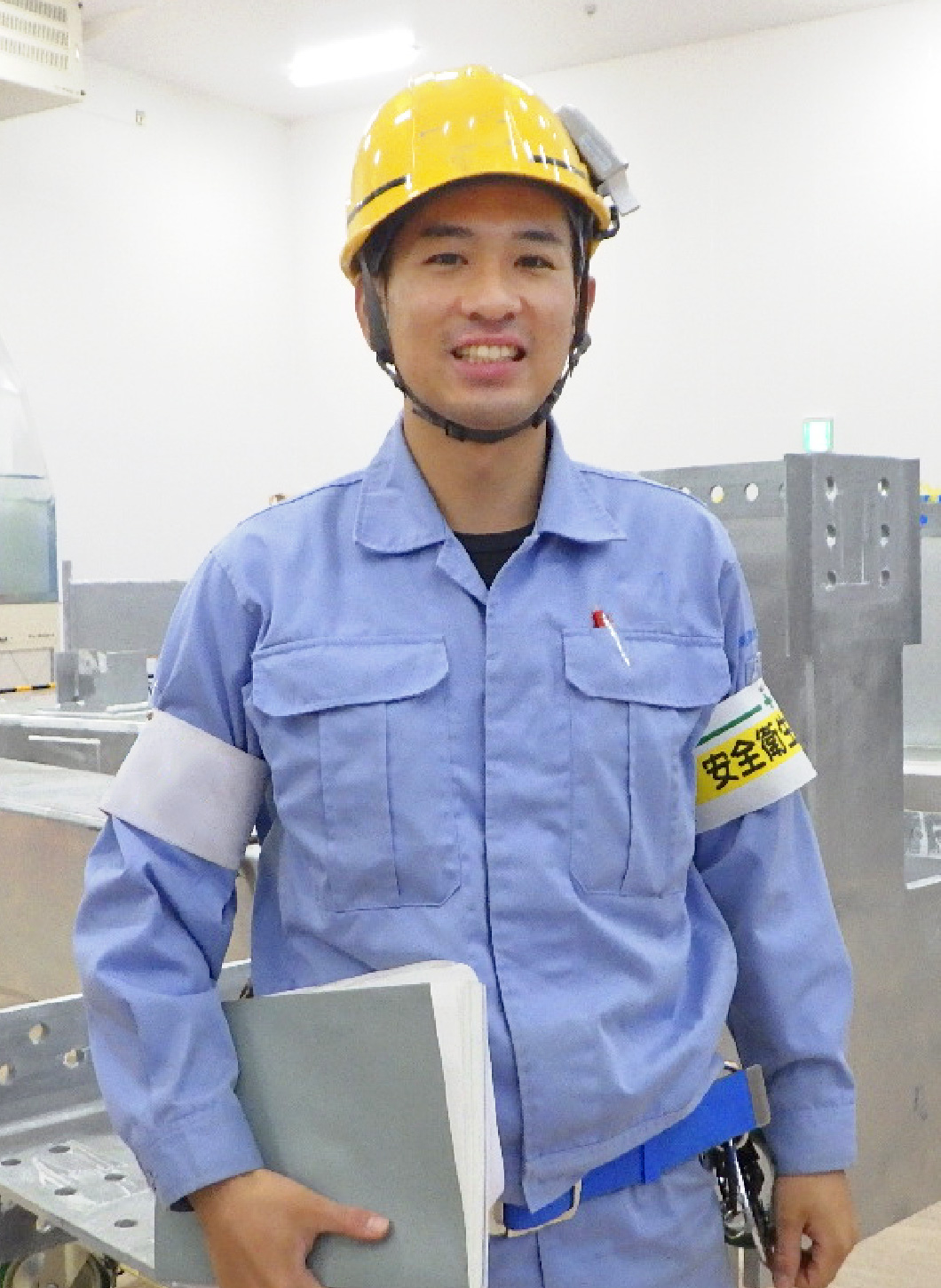 1つのコンテナで、粉体の貯槽、搬送、計量、混合、洗浄を全自動で運用する 『コンテナハンドリングシステム』 の建設工事を担当しています。私の業務内容は現場を管理する現場監督です。具体的には、良い機械設備を作り上げて社会に貢献するために、協力会社の皆さんとコミュニケーションをとりながら、様々な図面に基づく施工の確認と、作業中の安全を確保しながら、災害ゼロでの工事完了を目指しています。
