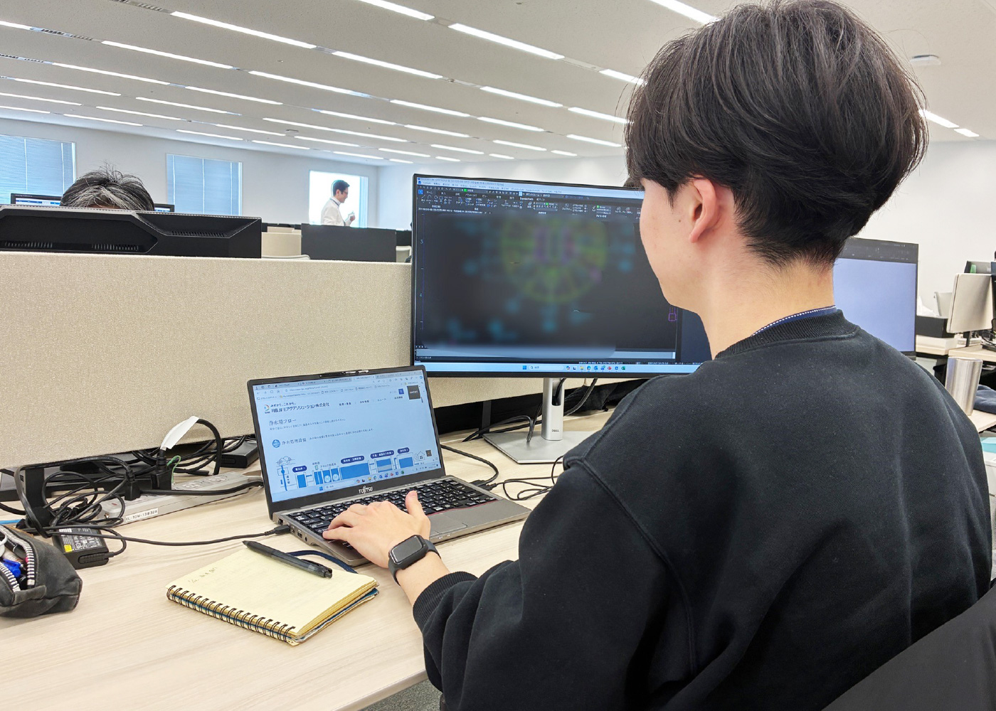 学生時代に学んだ機械設計を業務として扱える企業を志望していました。特に、水インフラは生活に不可欠で需要が大きく変動しにくいため、安定した技術分野で経験を積めると考えていました。複数の企業を比較する中で、TJASは取り扱う設備や機器が幅広く、設計として関わる対象が限定されない点に魅力を感じました。様々な案件に携われる環境だと判断し、入社を決めました。